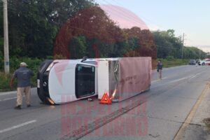 🔺A la altura de las ruinas de Tankah, en la carretera federal 307 volcó una camioneta; por fortuna sólo hubo daños materiales. La mañana de este miércoles se registró la volcadura de una camioneta...