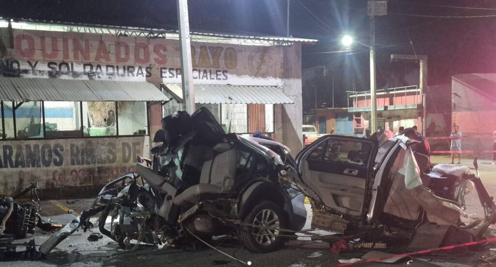 El vehículo se impactó inicialmente contra un poste de concreto de la Comisión Federal de Electricidad y posteriormente contra la pared de un taller mecánico.