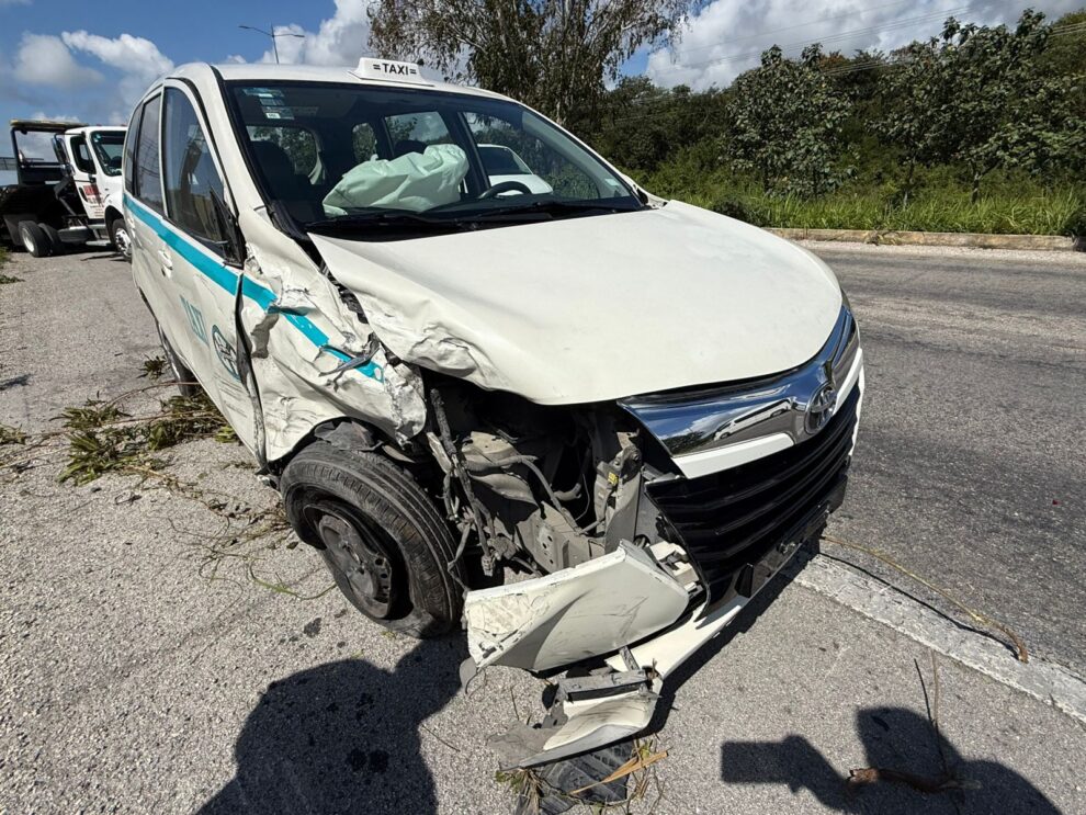 🔺️Un taxi impacta por alcance a un auto particular a la altura de Vidanta; ambos terminan fuera de la vía.