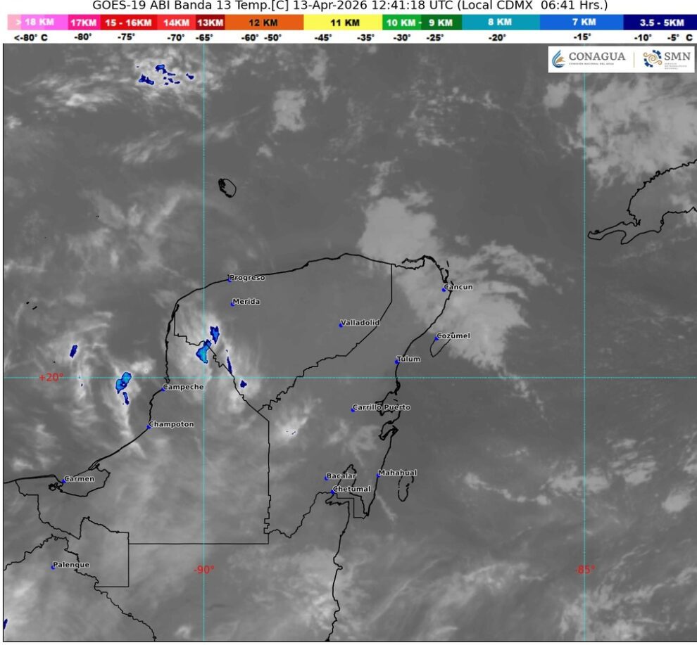 La península de Yucatán registrará este día condiciones variables, con cielo medio nublado y lluvias aisladas en Campeche, Yucatán y Quintana Roo, derivado de la interacción de canales de baja presión, inestabilidad atmosférica y el ingreso de humedad proveniente del mar Caribe y el golfo de México.