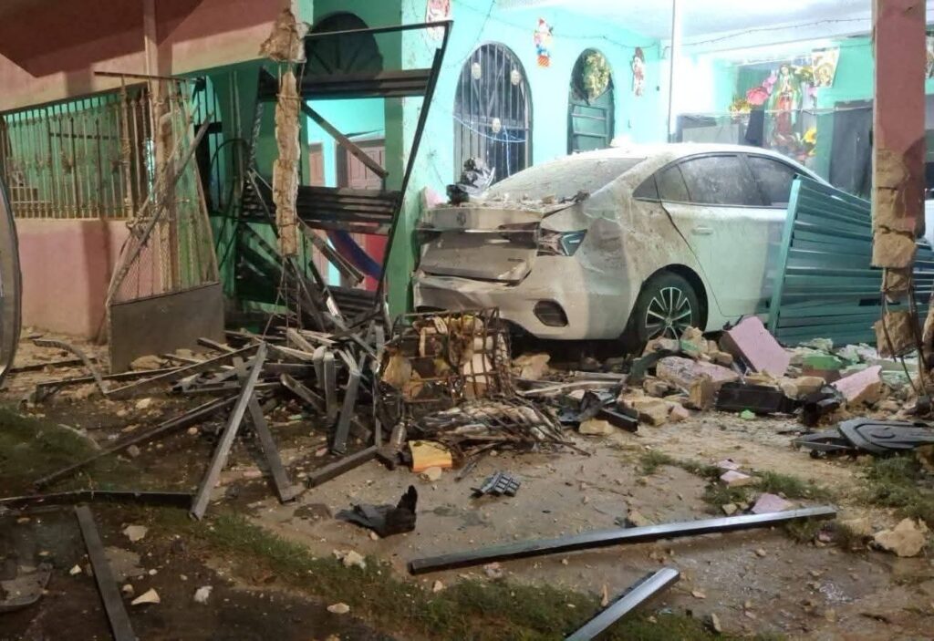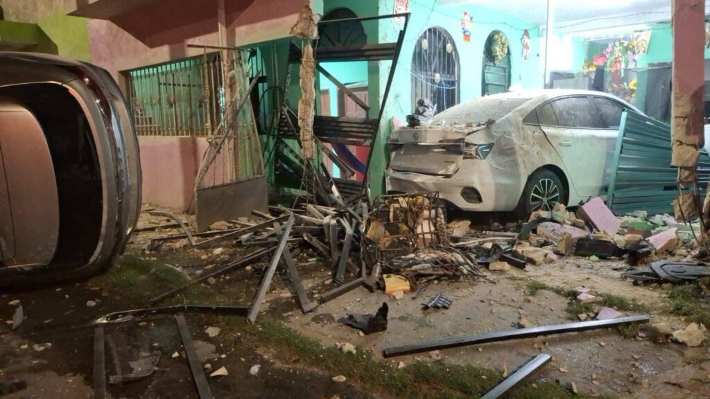 🔺Un chetumaleño perdió el control, chocó contra un vehículo estacionado en ¡la cochera! y dañó varias casas.