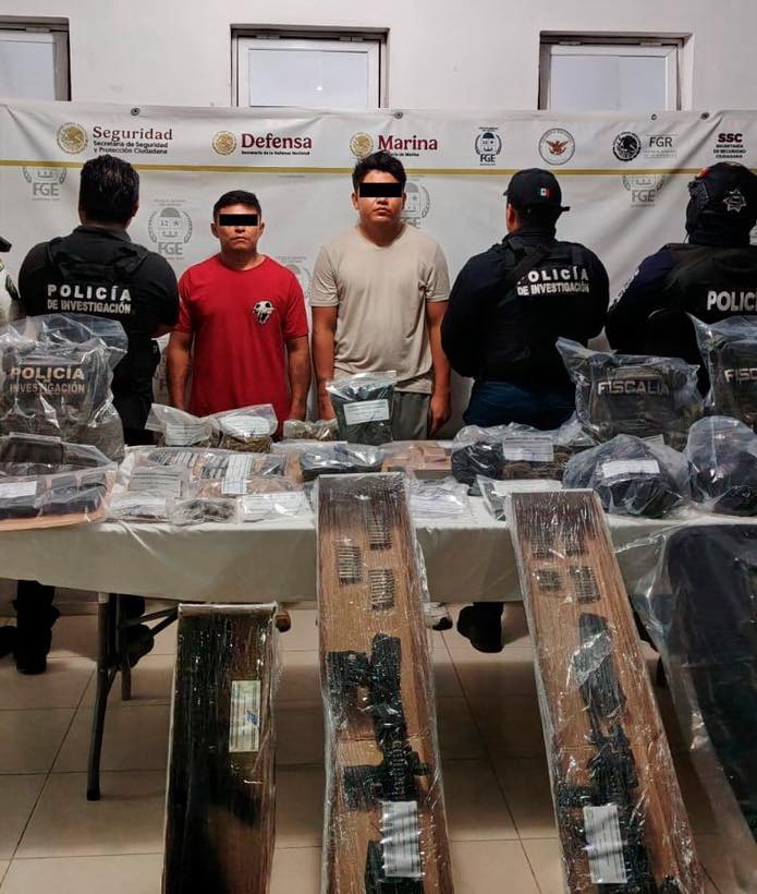 🔺Capturan a dos presuntos integrantes de una célula criminal en José María Morelos; la FGE informó que, a Eduardo “N” y Jorge Alexis “N” se les aseguraron armas largas, drogas, equipo táctico, dispositivos electrónicos y un vehículo.