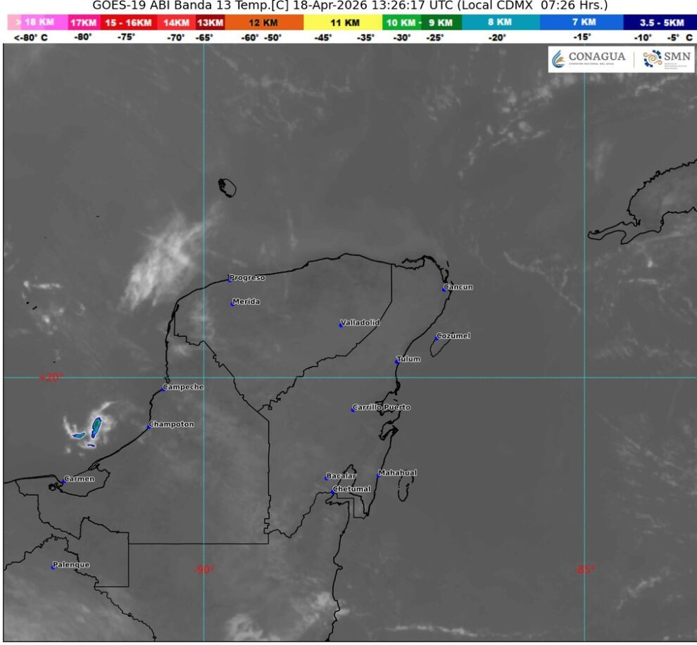 La Península de Yucatán vivirá este día una combinación de calor intenso y lluvias aisladas, principalmente en los estados de Campeche y Quintana Roo, donde se espera cielo medio nublado a nublado a lo largo de la jornada.