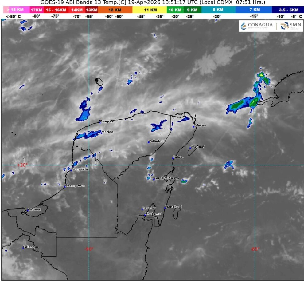 En cuanto a las condiciones del cielo, se prevé un incremento de nubosidad durante el transcurso del día, con probabilidad de lluvias aisladas en estados como Campeche y Quintana Roo, mientras que en Yucatán las precipitaciones serán más limitadas.