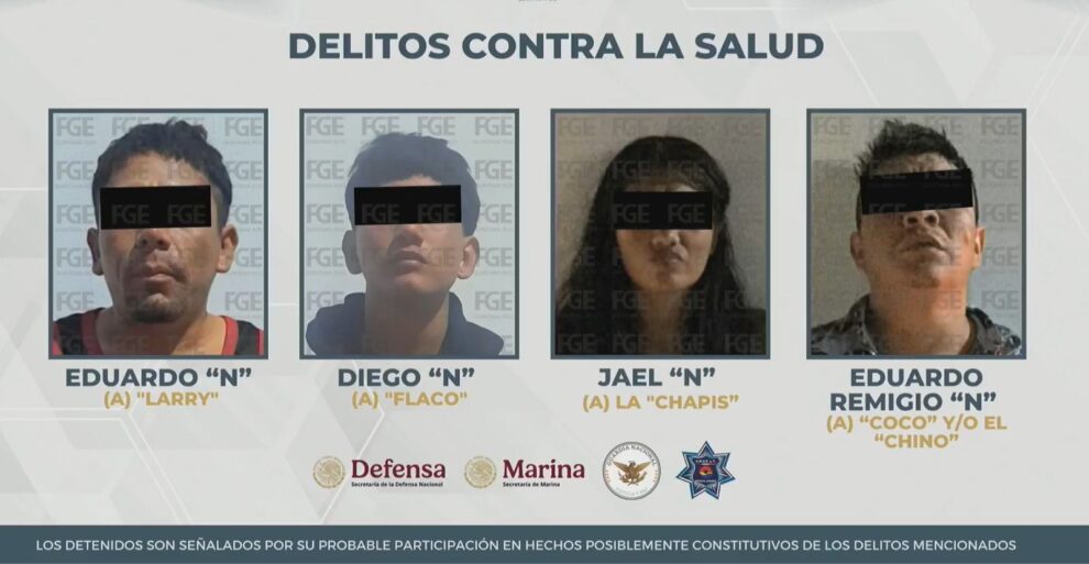 Los detenidos fueron identificados como Eduardo “N”, alias “Larry”; Diego “N”, alias “Flaco”; Jael “N”, alias “Chapis”; y Eduardo Remigio “N”, alias “Coco” o “Chino”.