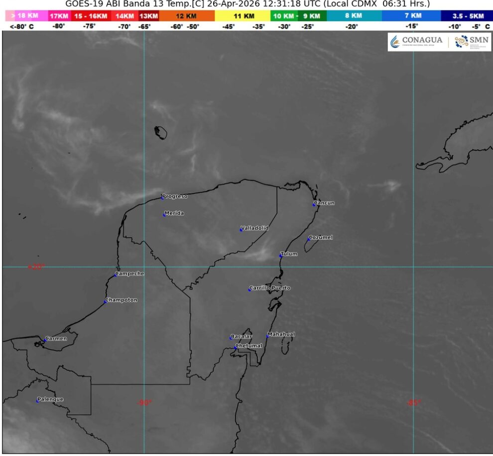Para la tarde, las temperaturas escalarán a niveles calurosos y muy calurosos, con efectos más marcados en la costa de Campeche, así como en el oeste y suroeste de Yucatán, además del oeste de Quintana Roo, donde comenzará a resentirse la onda de calor.