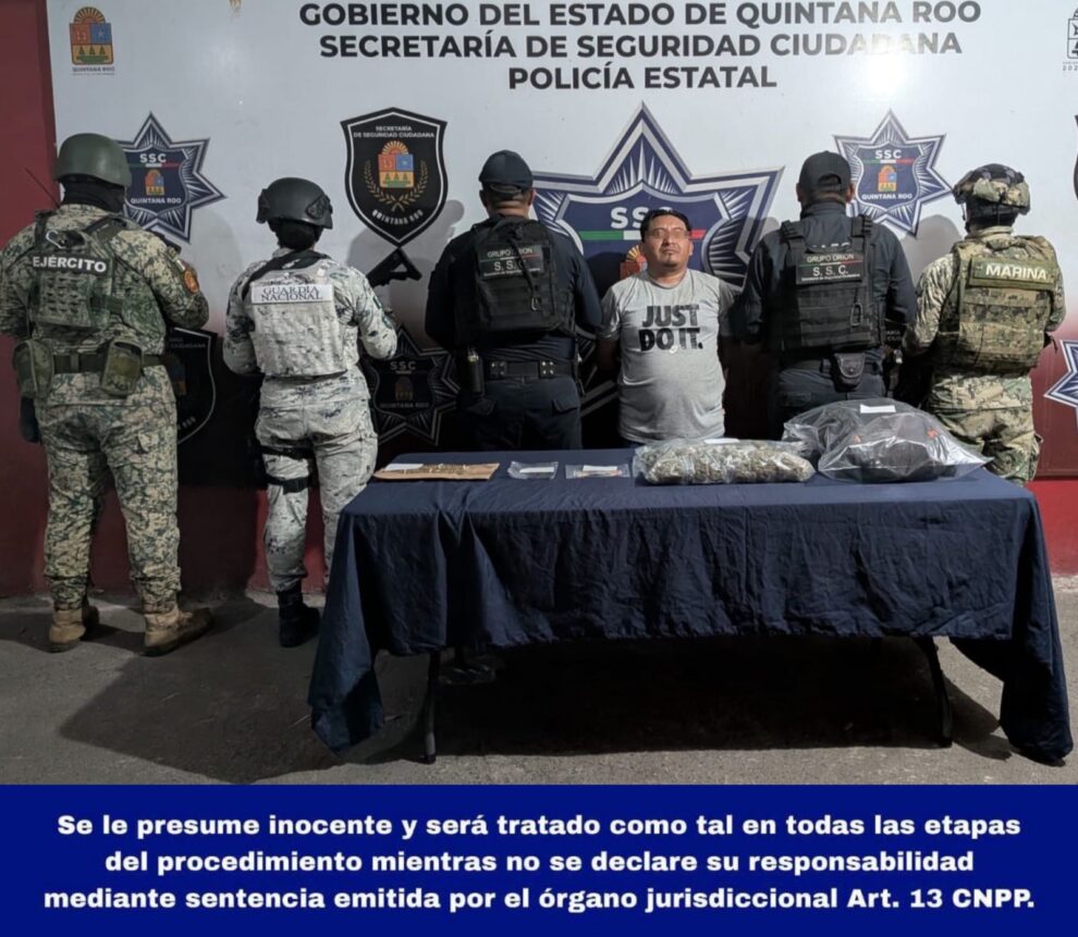 Los hechos ocurrieron sobre la avenida Andrés Quintana Roo, en la Supermanzana 96, donde el sujeto, al notar la presencia de elementos de seguridad, intentó escapar a bordo de un vehículo, pero fue alcanzado metros adelante.