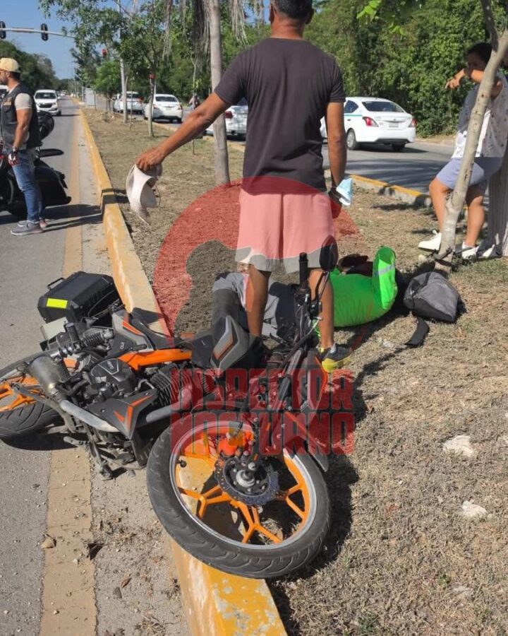 El hecho ocurrió alrededor de las 12:30 del día, cuando el conductor de una motocicleta Italika 125, color gris, circulaba en dirección hacia el sur y luego de pasar la avenida 38, perdió el control del vehículo al parecer por gravilla suelta y se impactó contra el camellón central.