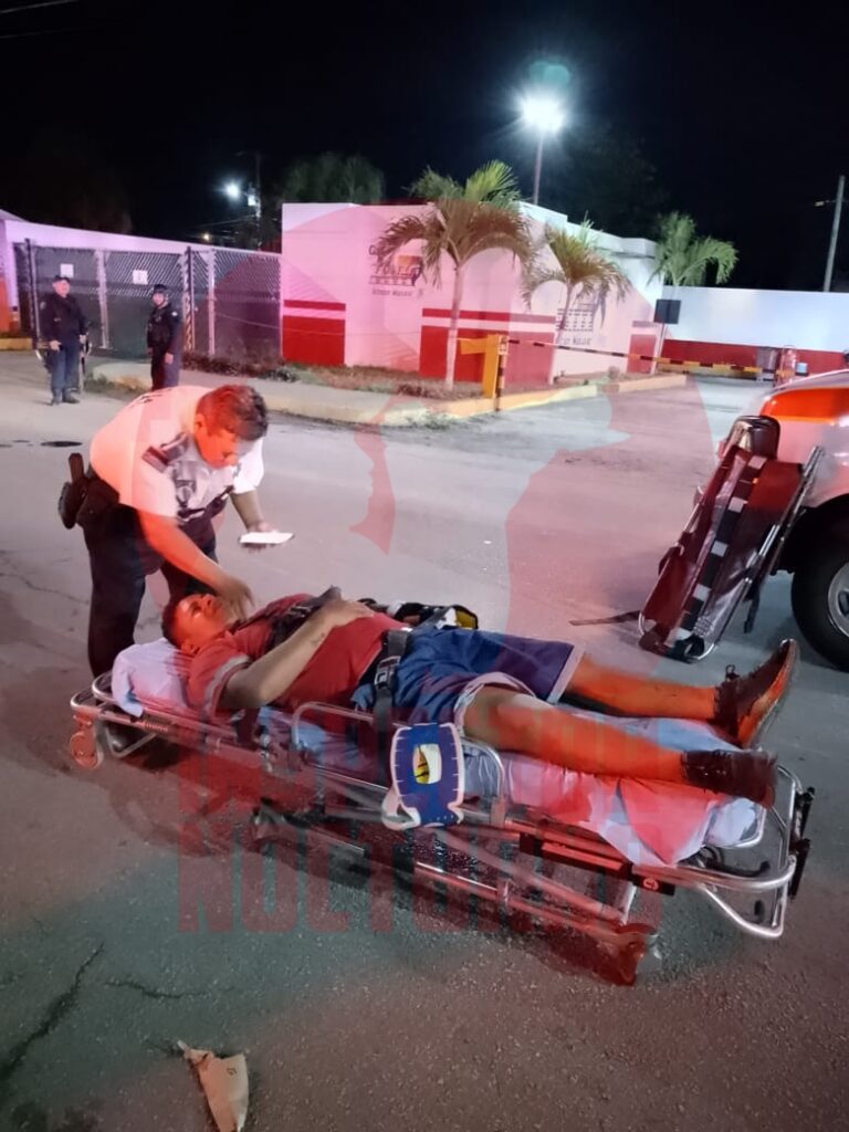 Chetumal.- Esta madrugada se registró un accidente vial en la avenida Maxuxac con la Constituyentes, en el que un sujeto en completo estado de ebriedad que previamente protagonizó una riña, al intentar darse a la fuga aceleró su moto.