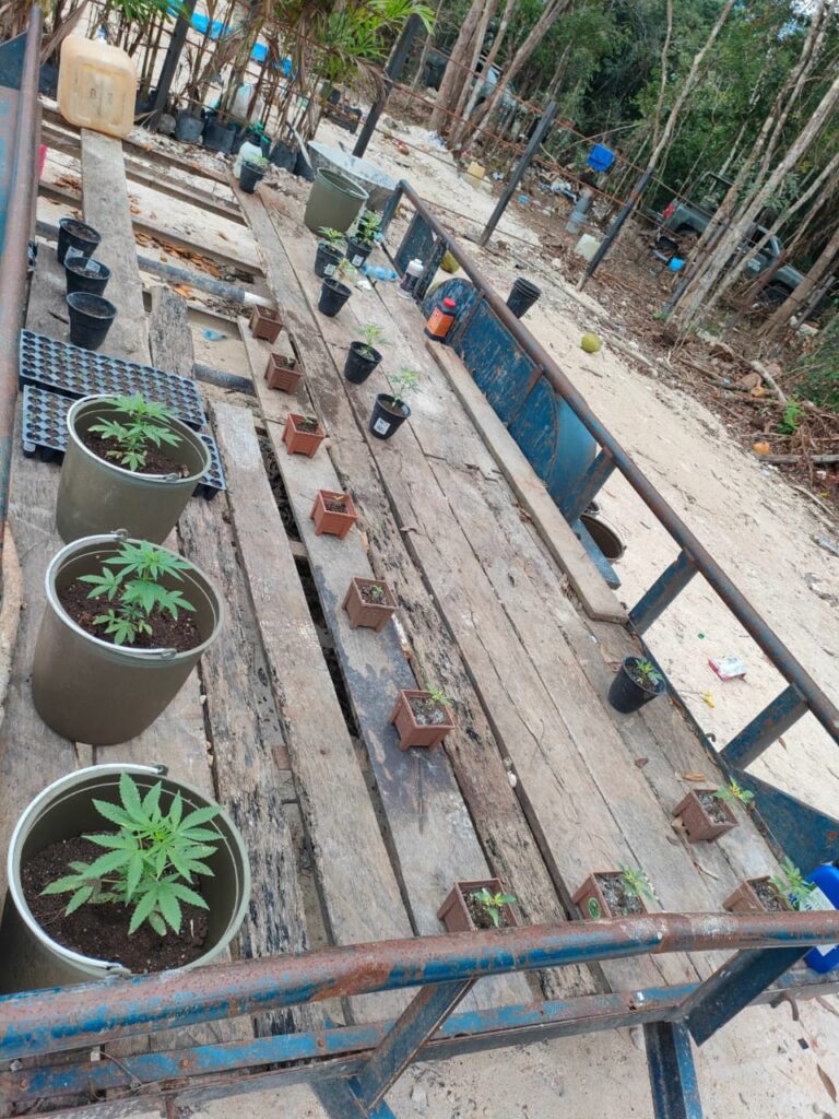 TambiĂ©n habĂa chalecos, cartuchos Ăștiles, e incluso en las cercanĂas habĂa un terreno donde se encontraron mĂșltiples plantas de marihuana que estaban siendo cultivadas.