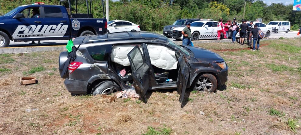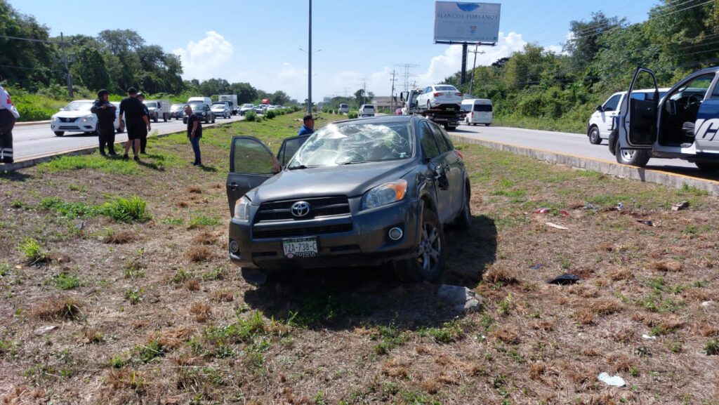 Playa del Carmen.- Una persona lesionada y un vehículo como pérdida total fue el saldo que dejó un aparatoso accidente sobre la carretera federal 307, a la altura de Punta Maroma.