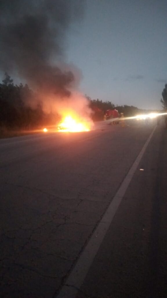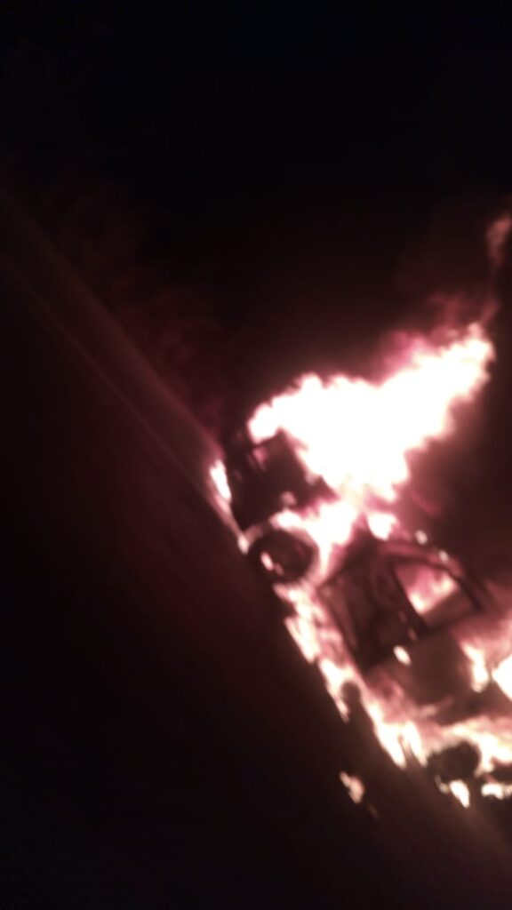 De inmediato detuvieron la unidad a un costado de la carretera y bajaron a toda velocidad de la unidad, ahí el el fuego empezó a extenderse desde el área del motor hasta consumir totalmente la unidad.