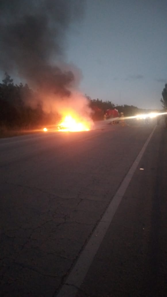 El incendio ocurrió a 15 kilómetros de Mahahual, por lo que solicitaron apoyo de los cuerpos de emergencia y los bomberos, pero cuando estos arribaron el fuego ya había cubierto toda la unidad.