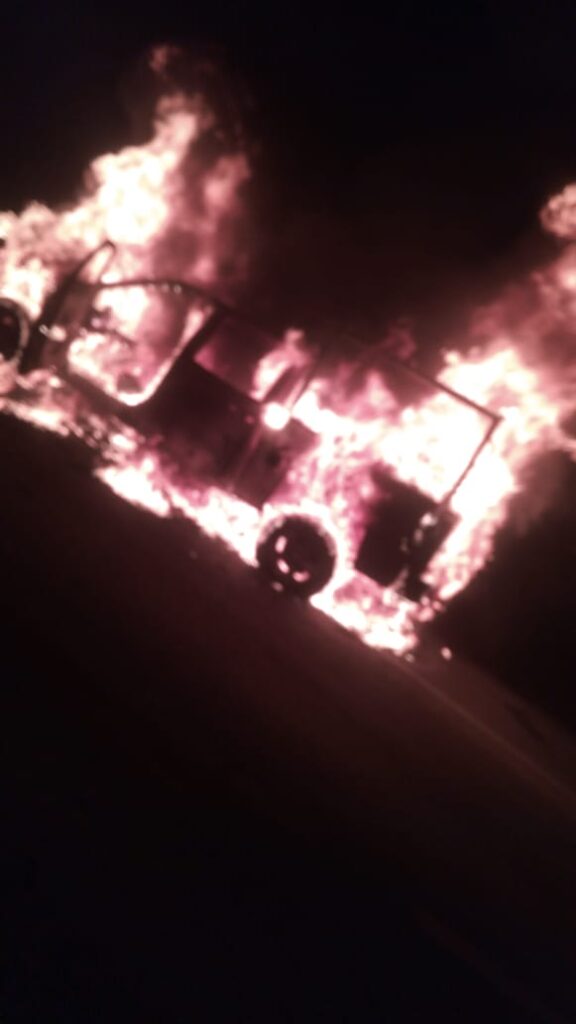 Chetumal.- Esta madrugada se registró el incendio de una camioneta tipo Cheyenne de la Secretaria de Marina Armada de México; estaba circulando con dirección a la base de Mahahual, tras llevar a cabo un recorrido cuando de repente empezó a echar humo y segundos después los uniformados vieron fuego salir del motor.