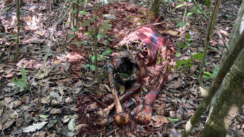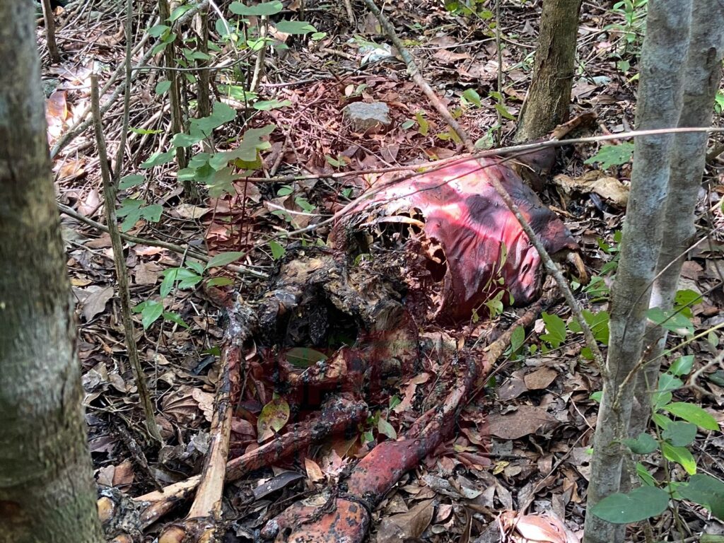 Un par de metros más adelante, confirmaron el hallazgo de un torso y un brazo que todavía tenía tejido, así como huesos que podrían ser pelvis, un par de fémur, cráneo y posiblemente brazo.