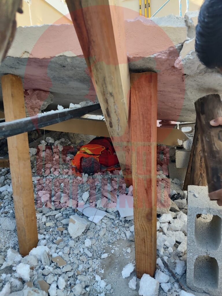 🔺Un trabajador falleció y otro resultó herido, al desplomarse una estructura metálica en la entrada de colaboradores y proveedores de hotel cercano a Puerto Aventuras (imagen fuerte).