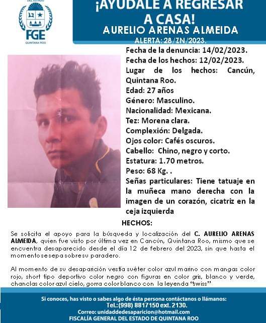 Trascendió que por la desaparición del joven la Fiscalía General del Estado activó una alerta de búsqueda, y podría tratarse de Aurelio A.A.