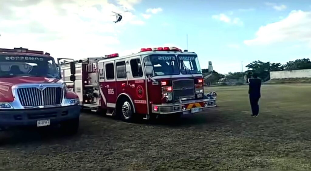 Por el estado crítico del pequeño se empleó el helicóptero “BELL 429” de la Secretaría de Seguridad Pública, que lo hizo llegar a la capital yucateca.