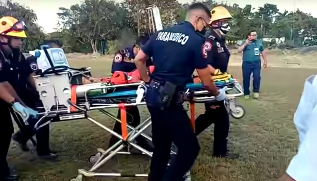 Al caer sufrió varias fracturas y politraumatismo craneoencefálico, lo que puso en riesgo su vida, por lo que fue trasladado a Mérida.