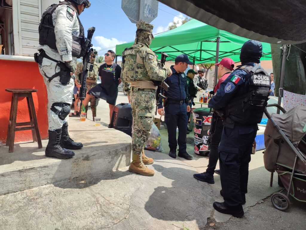 Durante el recorrido por parte de la policía Quintana Roo y Marina se logró la detención de dos personas,quienes estaban en un puesto de “micheladas” consumiendo sustancias tóxicas por lo cual fueron puestos a disposición.