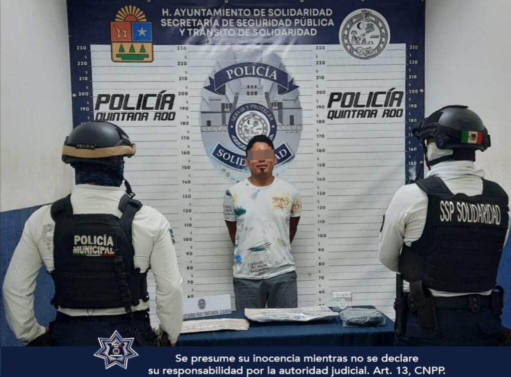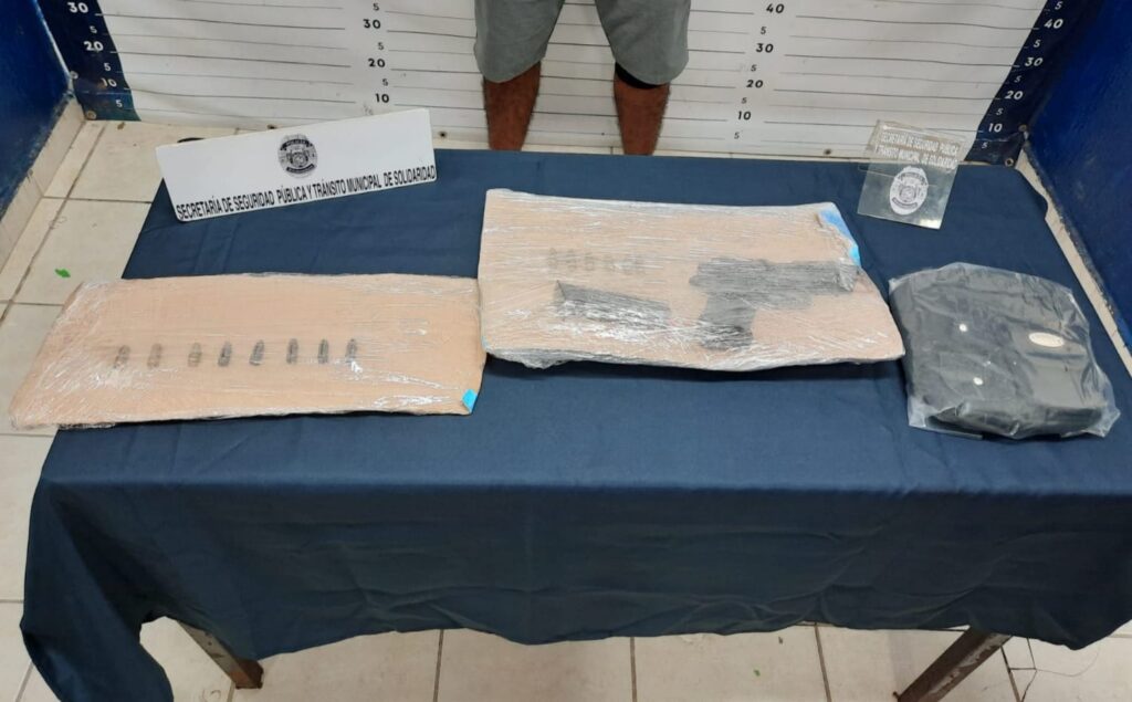 La Policía Turística realizaba vigilancia sobre la avenida Primera con calle 26 donde observaron a Jorge “N” de 33 años de edad, originario de Tabasco quien al notar la presencia policial emprendió la huida y al correr se resbaló y salió un arma de fuego de su bolso.