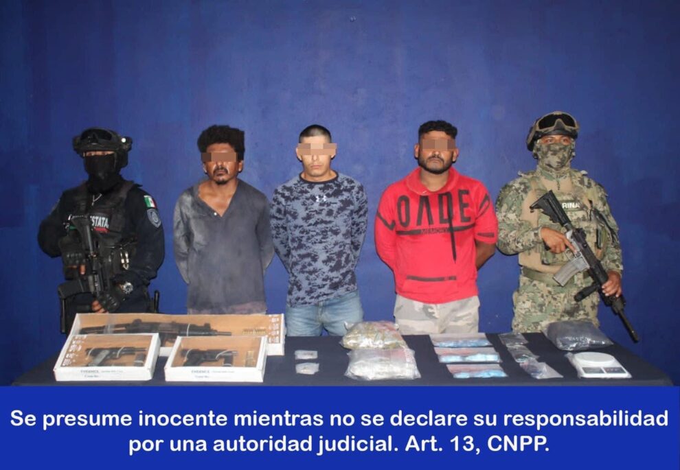Aunque no se precisó donde se logró el aseguramiento, lo que sí es cierto es que los sujetos estaban armados y tenían en su poder dosis de drogas.