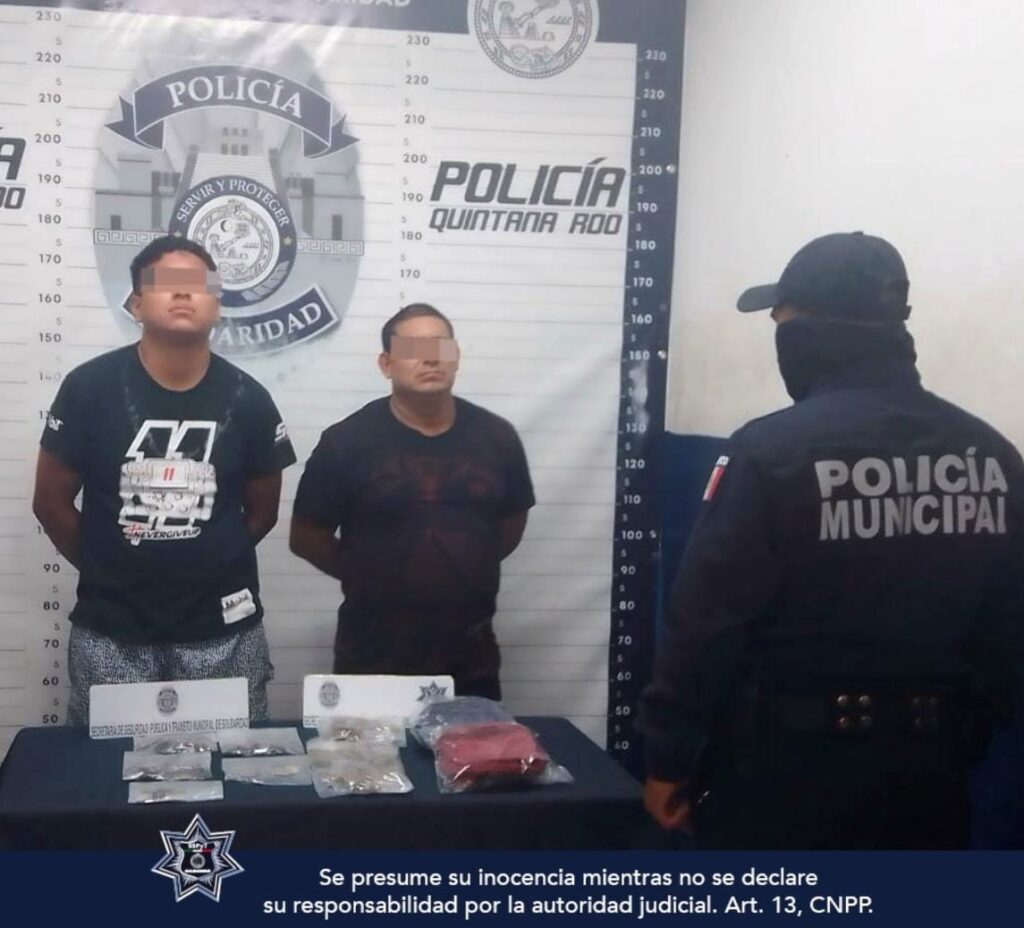 Asimismo, aseguraron a dos sujetos identificados como JosĂ© “N”, de 45 años de edad, originario de Chiapas y Miguel “N” de 27 años, oriundo de Tabasco, que fueron sorprendidos al interior de un vehĂculo estacionado sobre la avenida Gran BahĂa en la colonia Inn House, manipulando lo decomisado.