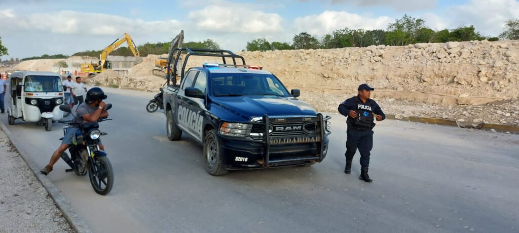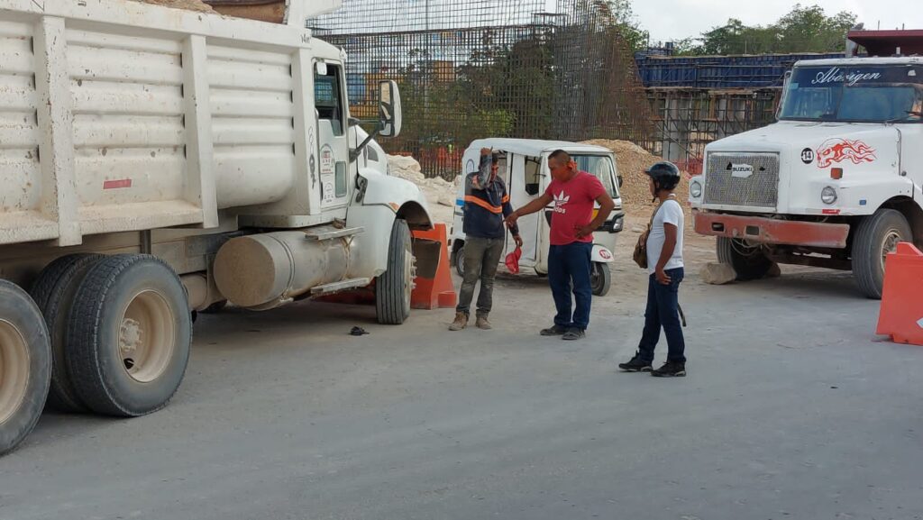 Este presuntamente no se hizo responsable de los daños, ya que los mismos trabajadores del ‘Tren Maya’, no brindaron información a las autoridades sobre qué unidad de volquetera, golpeó al mototaxista.