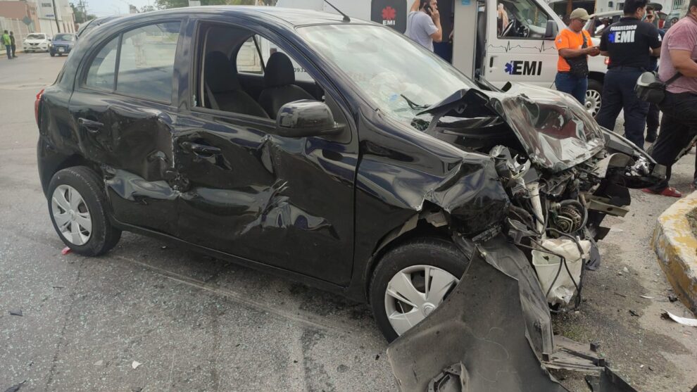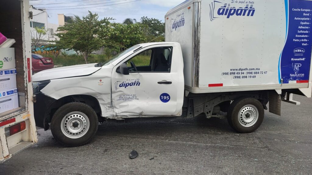 El ,conductor de un camioneta de la empresa Dipaht no midió su distancia y terminó por embestir a una Nissan March color negro con placas del estado de Yucatán.