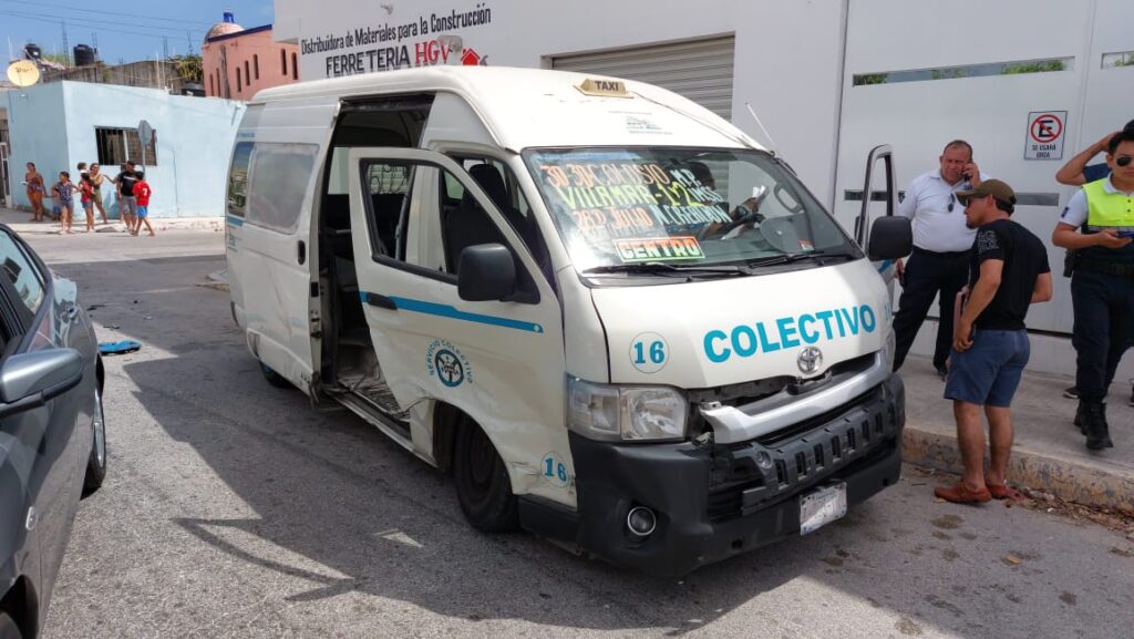 Al llegar a la avenida Tulum, no respetó su alto marcado con disco y colisionó en un costado a una combi del sindicato Lázaro Cárdenas del Río, con número 16, que iba con preferencia de paso en dirección hacia el sur.