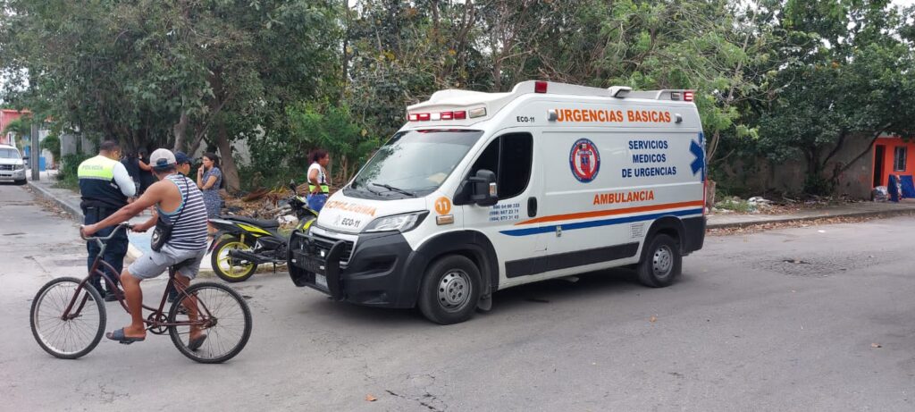 El hecho ocurrió alrededor de las 3:00 de la tarde, cuando el conductor de una combi Toyota Hiace, placas NHU 83 05, color blanco, circulaba sobre la calle 8 en dirección hacia el oriente, y al llegar a la avenida 105, colisionó a un hombre y a una mujer que iban a bordo de una motocicleta Italika XT 125 con placas 67BBT4, en compañía de un menor.
