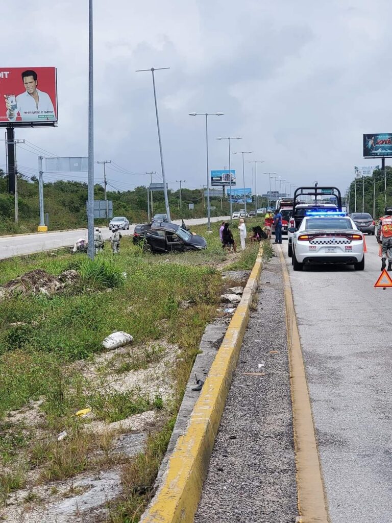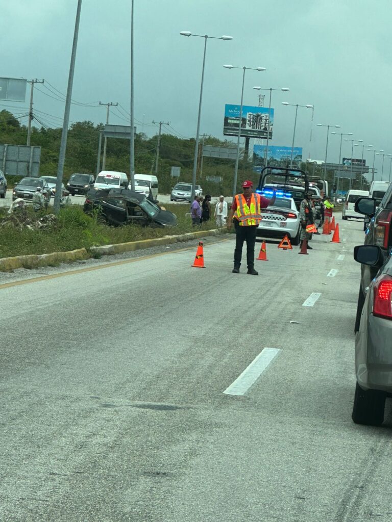 Los hechos ocurrieron alrededor de las 12:30 de la tarde cuando el conductor de un Suzuki, Baleno, color negro, se dirigía hacia Playa del Carmen sobre la carretera, pero al llegar metros antes del puente que se encuentra frente a Puerto Morelos, un neumático se le reventó.