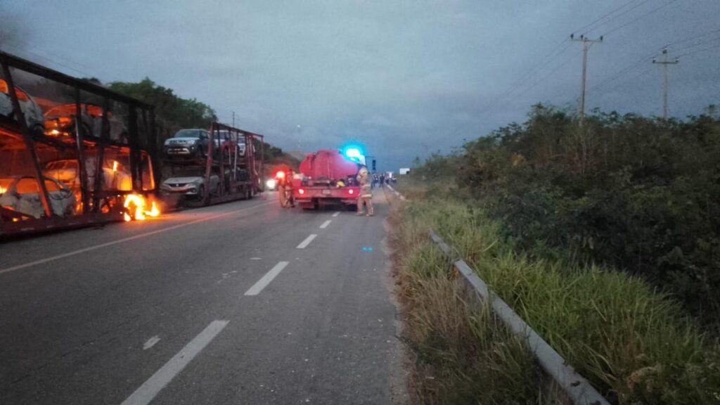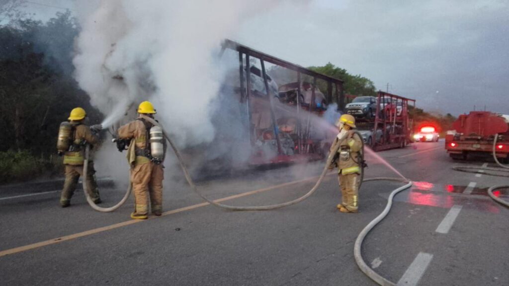 Chetumal.- Millonarias pérdidas dejó el incendio de una madrina, ocurrido en la carretera federal 186 tramo Chetumal – Escárcega, pasadas las 5:00 de la mañana.