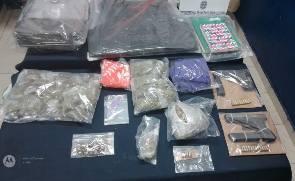 En tanto José “N” de 28 años quien portaba un chaleco balístico y tenía en su posesión un arma de fuego, tipo escuadra abastecida con 10 cartuchos y el tercer sujeto Ricardo “N” de 30 años, fueron detenidos, asimismo se aseguraron 6 cartuchos, 104 envoltorios con posible marihuana y 36 envoltorios con posible piedra.