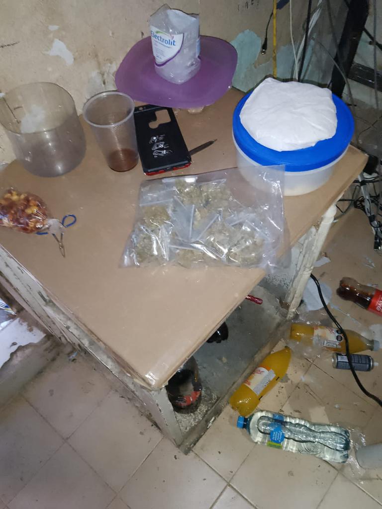 🔺 Durante la diligencia, se encontraron diversas dosis de hierba seca verde con las características propias de la marihuana, así como de polvo blanco granulado, similar a la cocaína y piedra.
