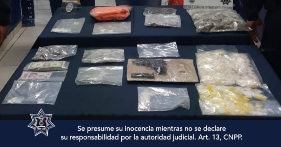 Ante el peligro real e inminente, los elementos actuaron confirme a la ley asegurando a 2 hombres y 1 mujer, identificados como Marco “N”,.de 35 años de edad, originario de la Ciudad de México en posesión de arma de fuego y un cargador abastecido con 7 cartuchos; además, cinco envoltorios con posible marihuana, 11 con posible piedra y 7 con lo que parece ser cristal.