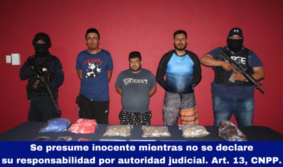 Cancún.- En posesión de diversas dosis de enervantes fueron detenidas tres personas, cerca de un paradero de transporte público en el kilómetro 16 del Boulevard Kukulcán; la Fiscalía de Narcomenudeo se hará cargo de las investigaciones.