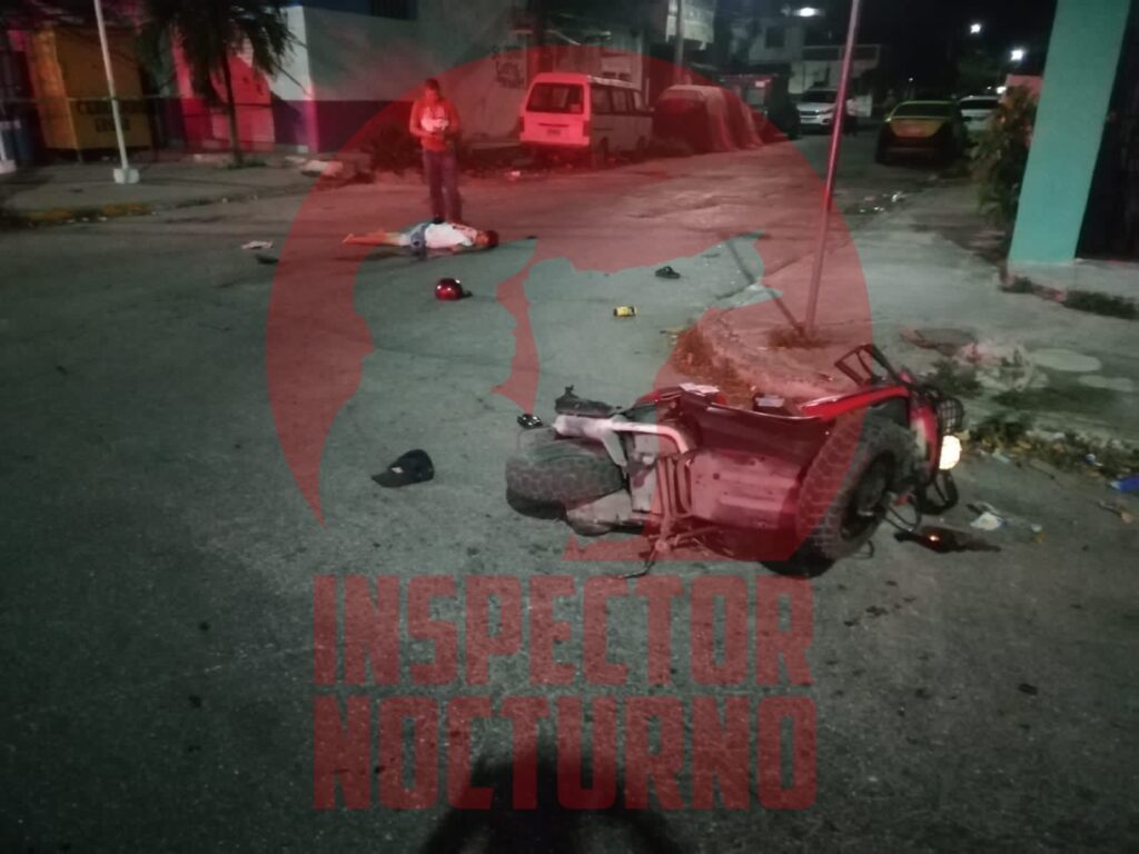 🔺LA madrugada de hoy, un motociclista, que circulaba con exceso de velocidad, murió al instante, tras derrapar en la avenida Nichupté.