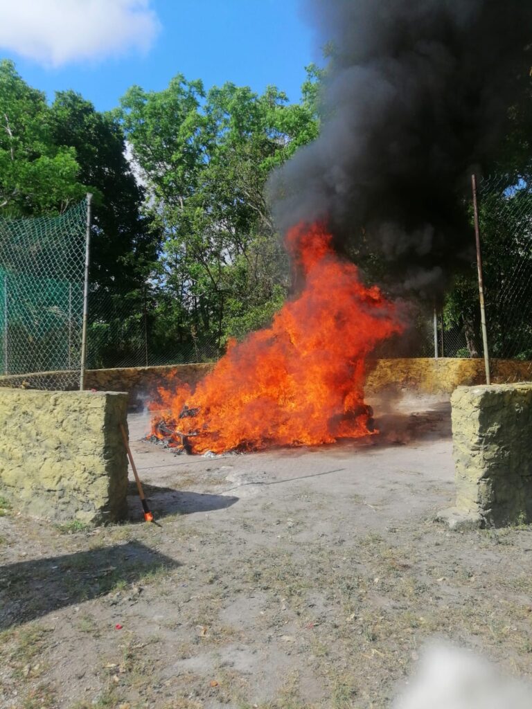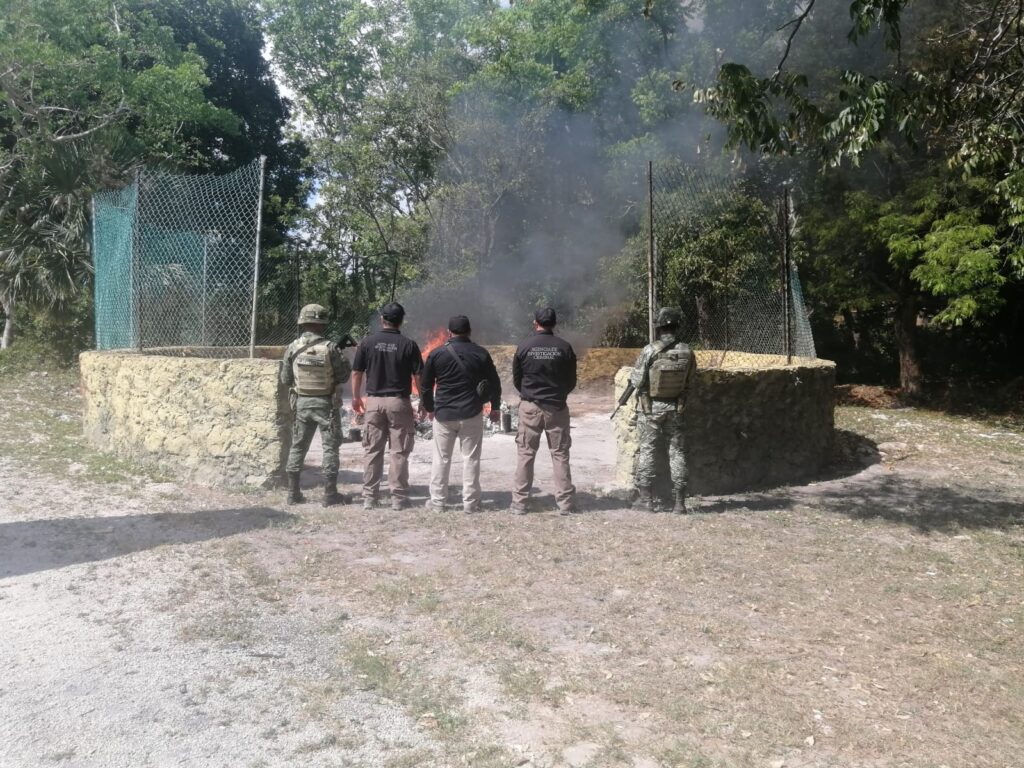 Cancún.- La Fiscalía General de la República (FGR) en Quintana Roo, realizo en coordinación con personal de la Secretaría de la Defensa Nacional (SEDENA), incineración de narcóticos y destrucción de objetos del delito.