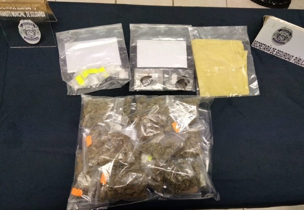 Tras marcarle el alto y darle alcance, los oficiales encontraron en las pertenencias de Adrián “N” de 23 años de edad, originario de Morelos, 17 envoltorios con posible marihuana, 12 con lo que parece la droga cristal y 6 con posible hachís, por lo que fue asegurado y puesto a disposición de la Fiscalía Especializada en Delitos Contra la Salud en su Modalidad de Narcomenudeo.