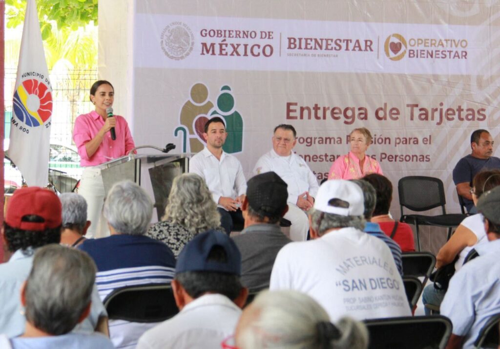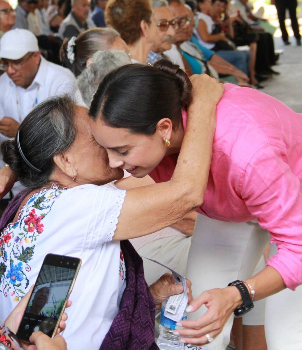 Cancún.- Además de abrazar y saludar a decenas de abuelitos quienes acudieron a recibir su tarjeta del programa “Pensión para el Bienestar de las Personas Adultas Mayores”, al domo de la Supermanzana 95, la Presidenta Municipal, Ana Paty Peralta, les reiteró que con la labor de instituciones sociales y varias dependencias, este sector poblacional está siendo atendido con actividades que les permite seguir económica y socialmente activos en su comunidad.