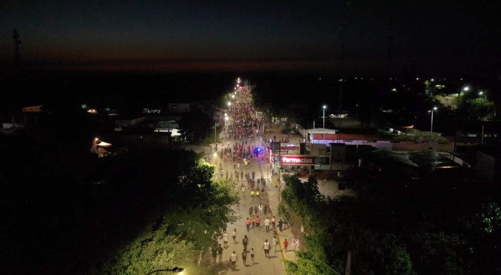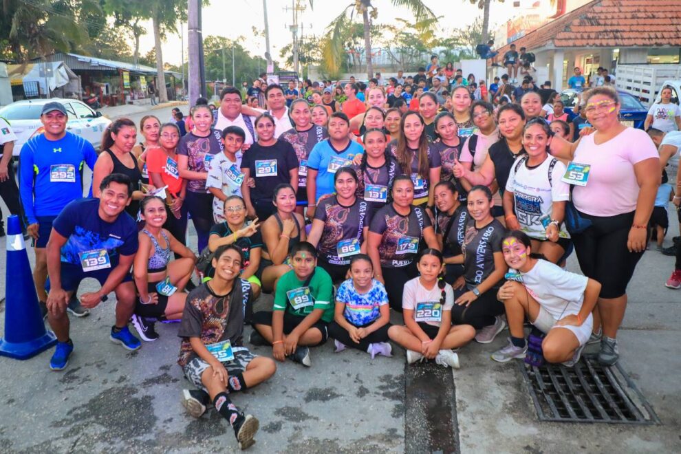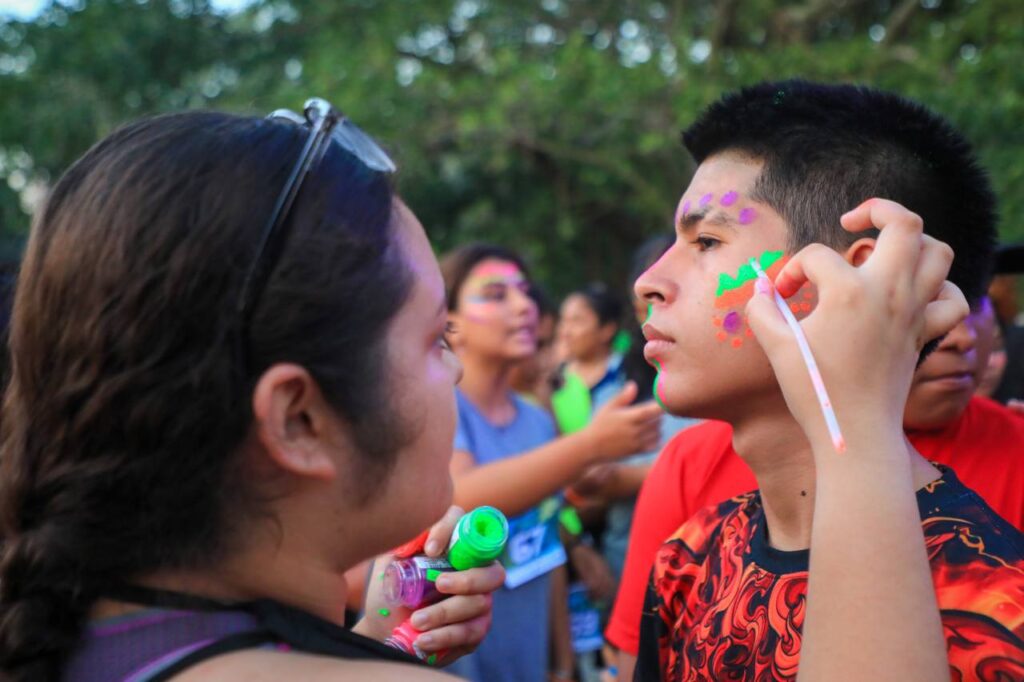 Playa del Carmen.- Con la participación de más de 500 personas, entre adolescentes, jóvenes y adultos, se llevó a cabo la carrera Injuve Neón 5K que el gobierno presidido por Lili Campos organizó a través del Instituto de la Juventud, como parte de la convivencia familiar y el sano esparcimiento, mismo que remató con un festival musical.
