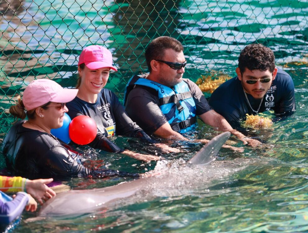 A través del Centro de Rehabilitación Integral Municipal (CRIM) Isla Mujeres, brinda las terapias asistidas por delfines, todos los martes y jueves de 9 a 10 de la mañana, gracias a la suma de voluntades con Dolphin Discovery.