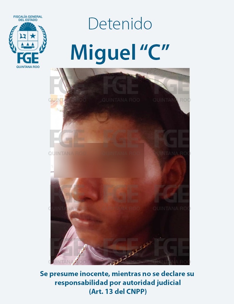 En este inmueble fue asegurada una persona del sexo masculino de nombre Miguel “C”, quien quedó a disposición de la representación social para deslindar responsabilidades en el término que establece la ley.