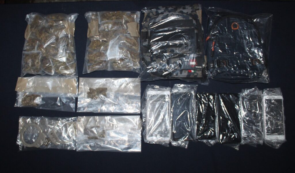 Los uniformados realizaron una inspección física a las cinco personas y les decomisaron: 54 dosis de vegetal verde con las características de la marihuana, seis celulares, dos mochilas y un candado de manos.