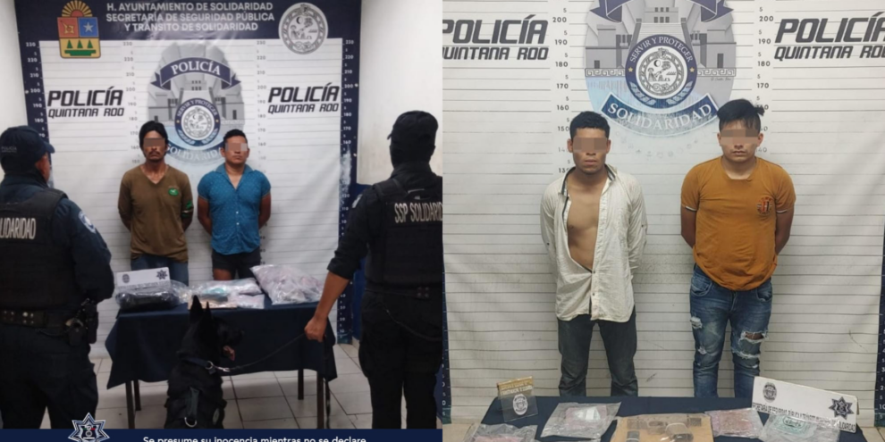 Playa del Carmen.- Agentes de la Policía de Solidaridad lograron el aseguramiento armas de fuego y una fuerte cantidad de diversas drogas en dos casos distinto; cuatro sujetos fueron detenidos.