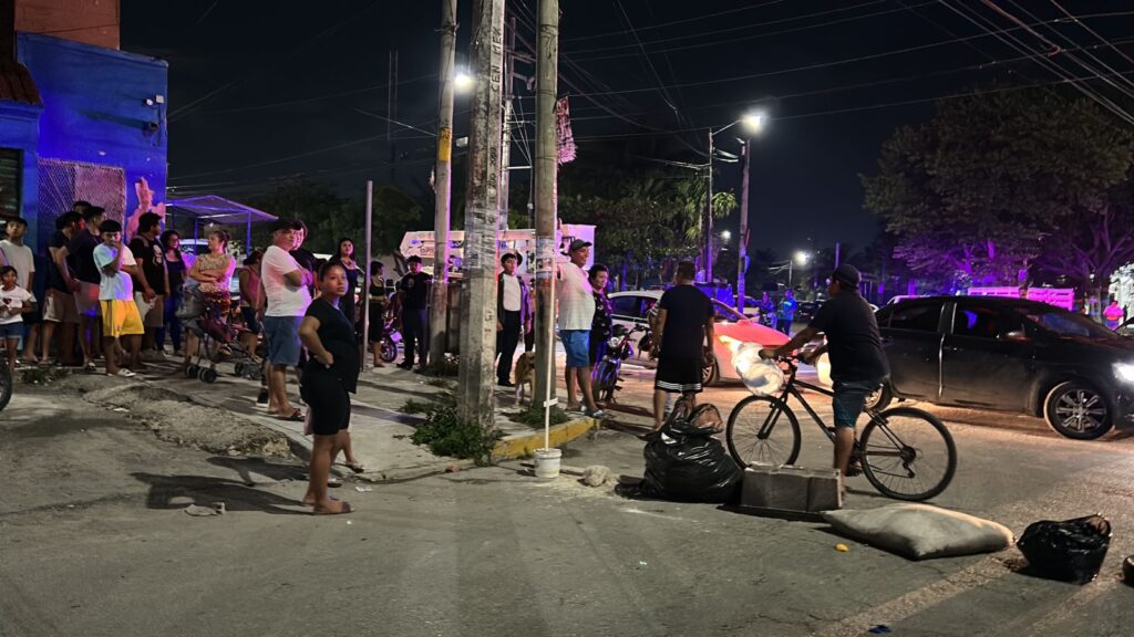 Cancún.- Vecinos del fraccionamiento Villas Otoch de la región 247, por falta de energía eléctrica por casi 24 horas, decidieron cerrar esta noche la avenidas Los Tules por aproximadamente dos horas.