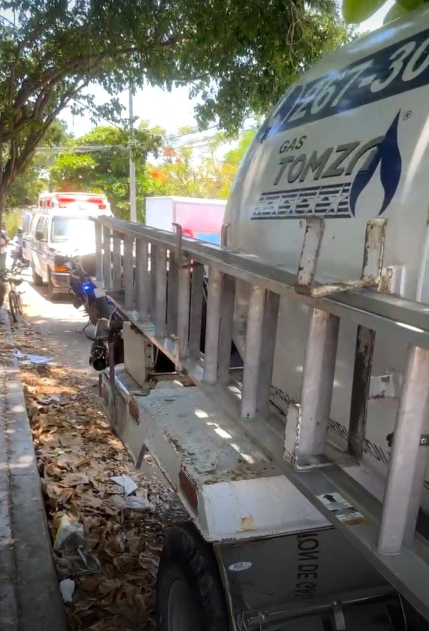 El conductor de la pipa transportadora de Gas LP de la empresa Tomsa Gas circulaba con preferencia de paso sobre la avenida 80 y al llegar a la calle 3 sur, cuando un joven de aproximadamente 20 años de edad se aventó a cruzar en su bicicleta sin precaución, generando el accidente.