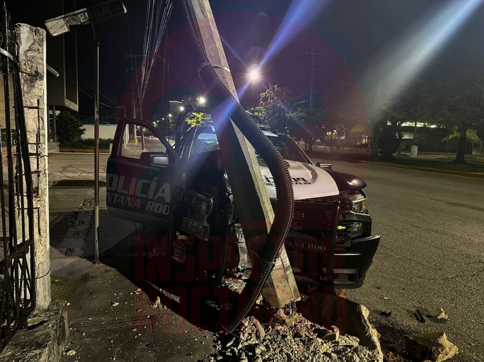 Cancún.- Exceso de velocidad y falta de precaución al conducir provocó que durante la madrugada , un elemento de la Secretaría de Seguridad Ciudadana, terminara impactado contra un poste de la Comisión Federal de Electricidad.