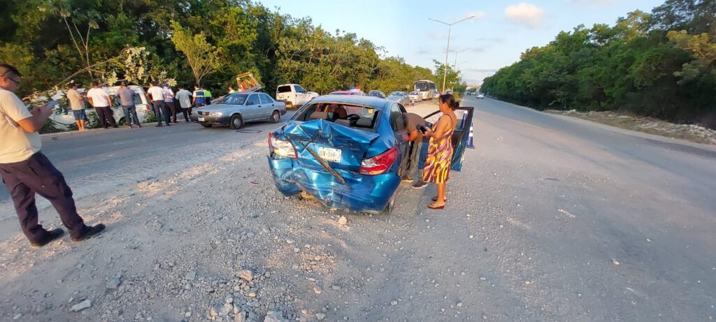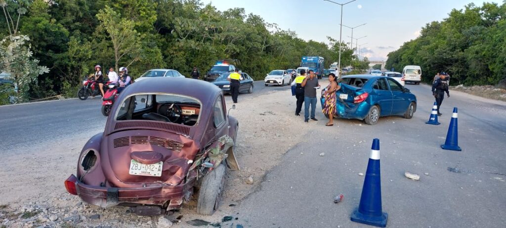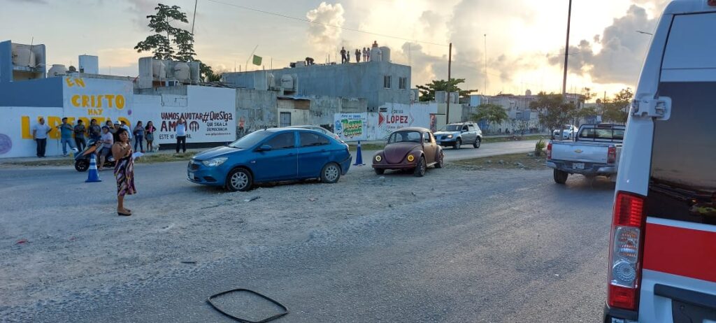Por la velocidad que llevaba al llegar a la avenida Pavo Real, golpeó por alcance a un Volkswagen Sedán (bocho), color rojo, con placas ZBG 042 A, el cual dio un giro de 180 grados y con la parte trasera golpeó a un Chevrolet Aveo, color azul, con matrícula UUV 064 J, que se encontraba en el camellón central, en dirección hacia el oriente esperando cruzar.